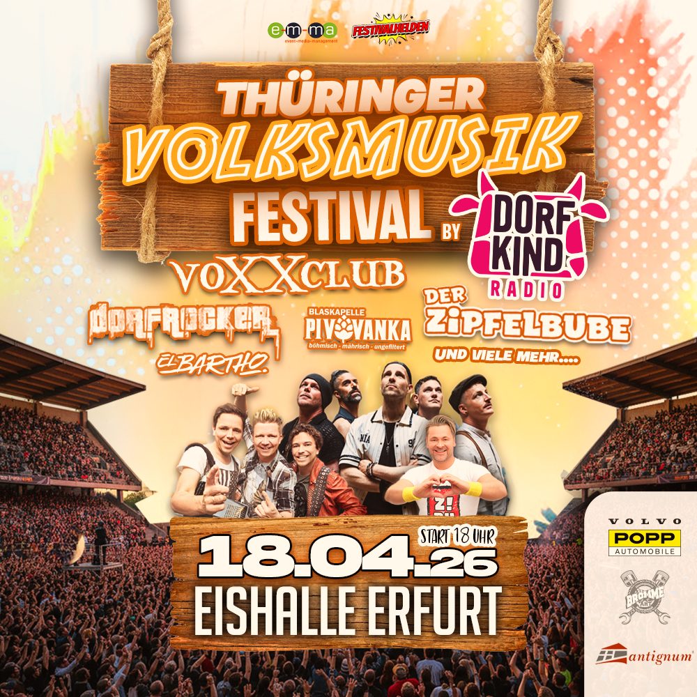 Feiern Sie mit uns am 18. April 2026 in der Eishalle Erfurt. Erleben Sie ein unvergessliches Volksmusik- und Party-Festival mit vielen Highlights!